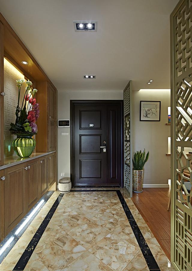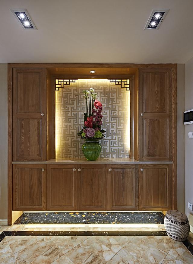 玄關,實木材質的柜子,看著成熟穩重。