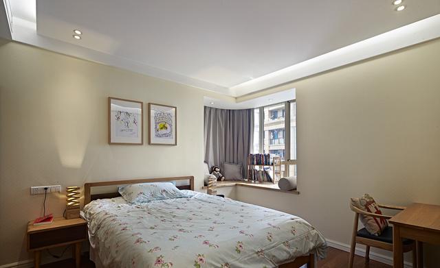 次臥,業主的子女最喜歡的是這間房,很清新簡約,還有個直角飄窗用來休閑。