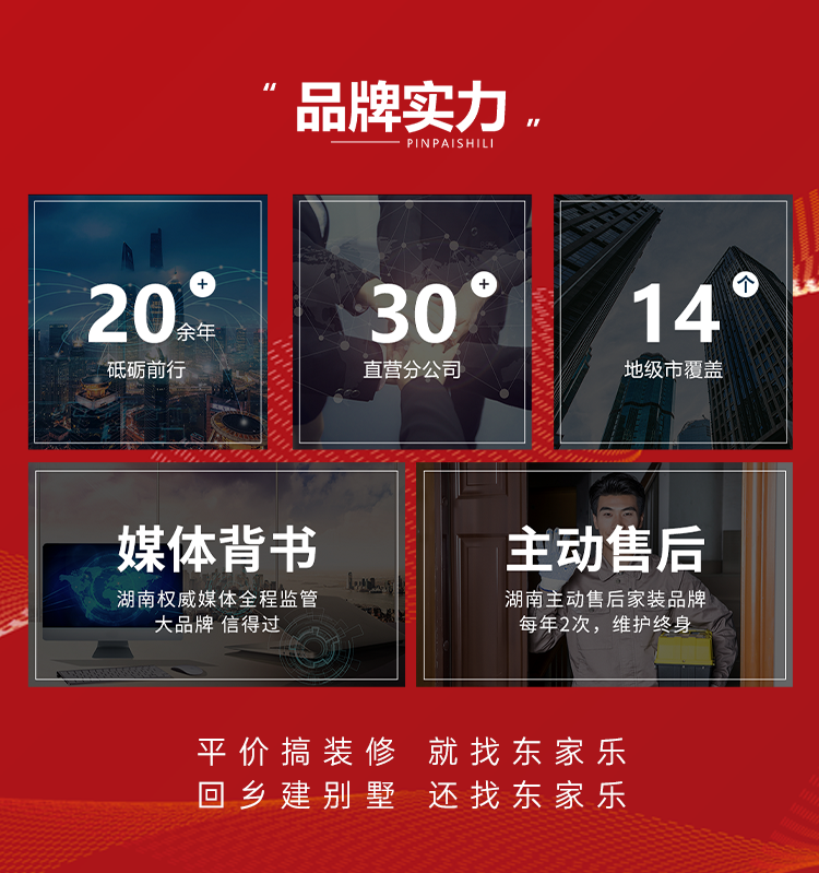 【品牌實力】東家樂家裝作為一家擁有 20多年家裝經驗的實力品牌,全國30+直營公司遍布湖南全省,東家樂家裝集團堅持用匠人精神做品質裝修,致力于做讓老百姓裝得起平價裝修,累計服務數萬個家庭,服務態度和專業能力,皆是有口皆碑!