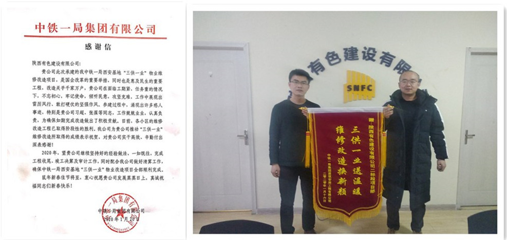 近日,公司收到建設(shè)單位中鐵一局集團(tuán)有限公司發(fā)來的感謝信,感謝公司在“三供一業(yè)”物業(yè)維修改造項目實施中,面對時間緊、任務(wù)重的情況,項目部人員攻堅克難、雷厲風(fēng)行、實干高效、敢打硬仗,順利完成各小區(qū)的維修改造工程,取得了階段性的勝利,希望公司再接再厲,一如既往堅持好的經(jīng)驗做法,確保所有工作全部順利完成。
